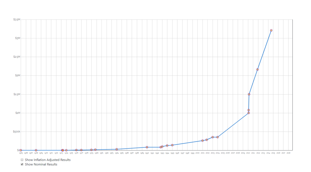 Check out the interactive timeline here. It includes both nominal and inflation adjusted data. There's more information about each sale available if you mouse over or tap on the circle representing the sale.