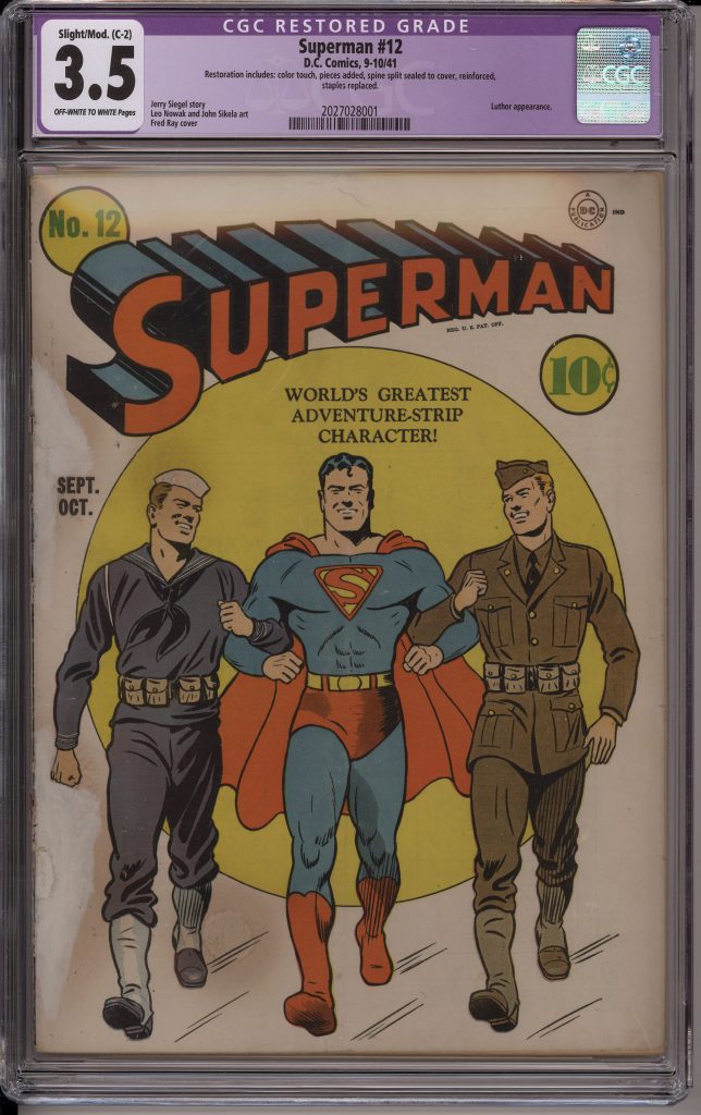 Superman #12 CGC 3.5 Restored (C-2) Patriotic WW2 Cover